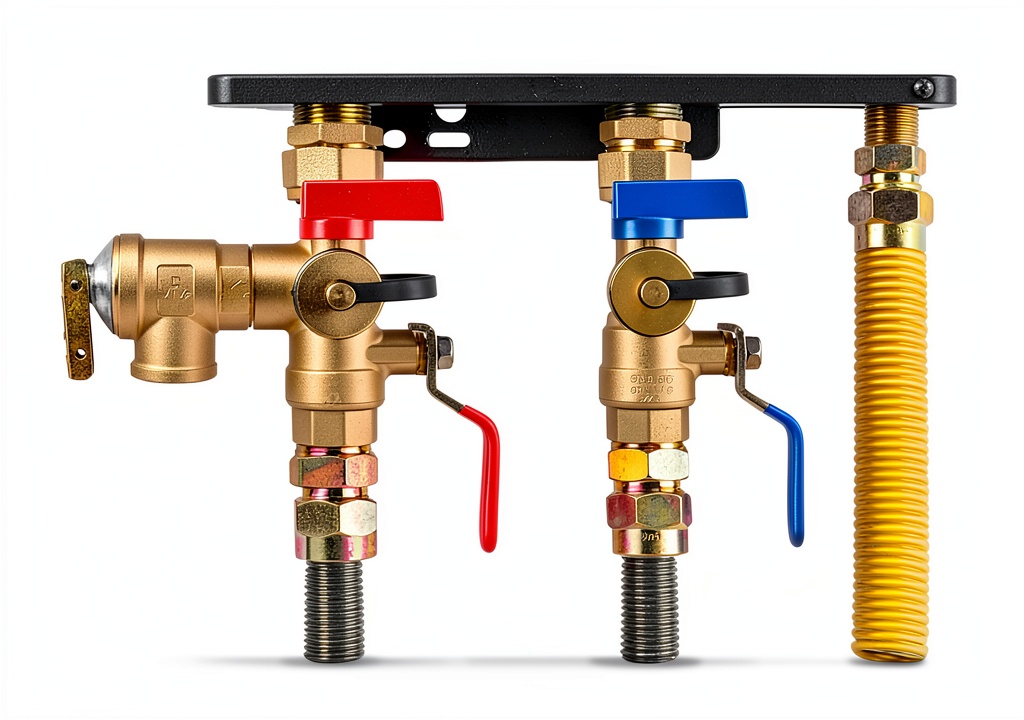 This valve kit is ideal for residential and commercial settings, compatible with most 3/4-inch tankless water heater brands like Noritz. It is used for isolating water flow during maintenance, repairs, or replacements, providing a safe and efficient way to manage hot and cold water valves. The integrated drain valve with a braided hose connection facilitates easy draining, making it suitable for DIY enthusiasts and professional plumbers alike.